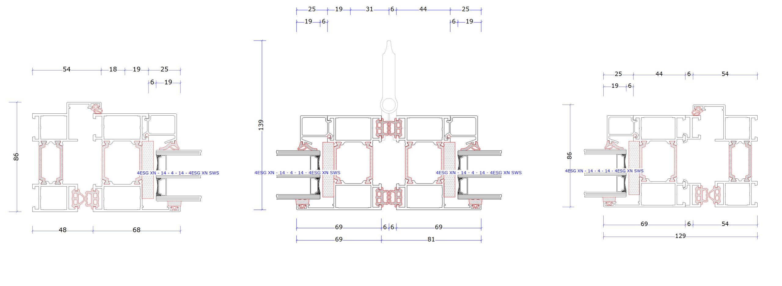 | BÅGPOSTER | Bygger 76 mm i synligt breddmått. 7Dessa är fasta genomgående poster och separerar / delar glasen i seprata kassetter / luft. | |